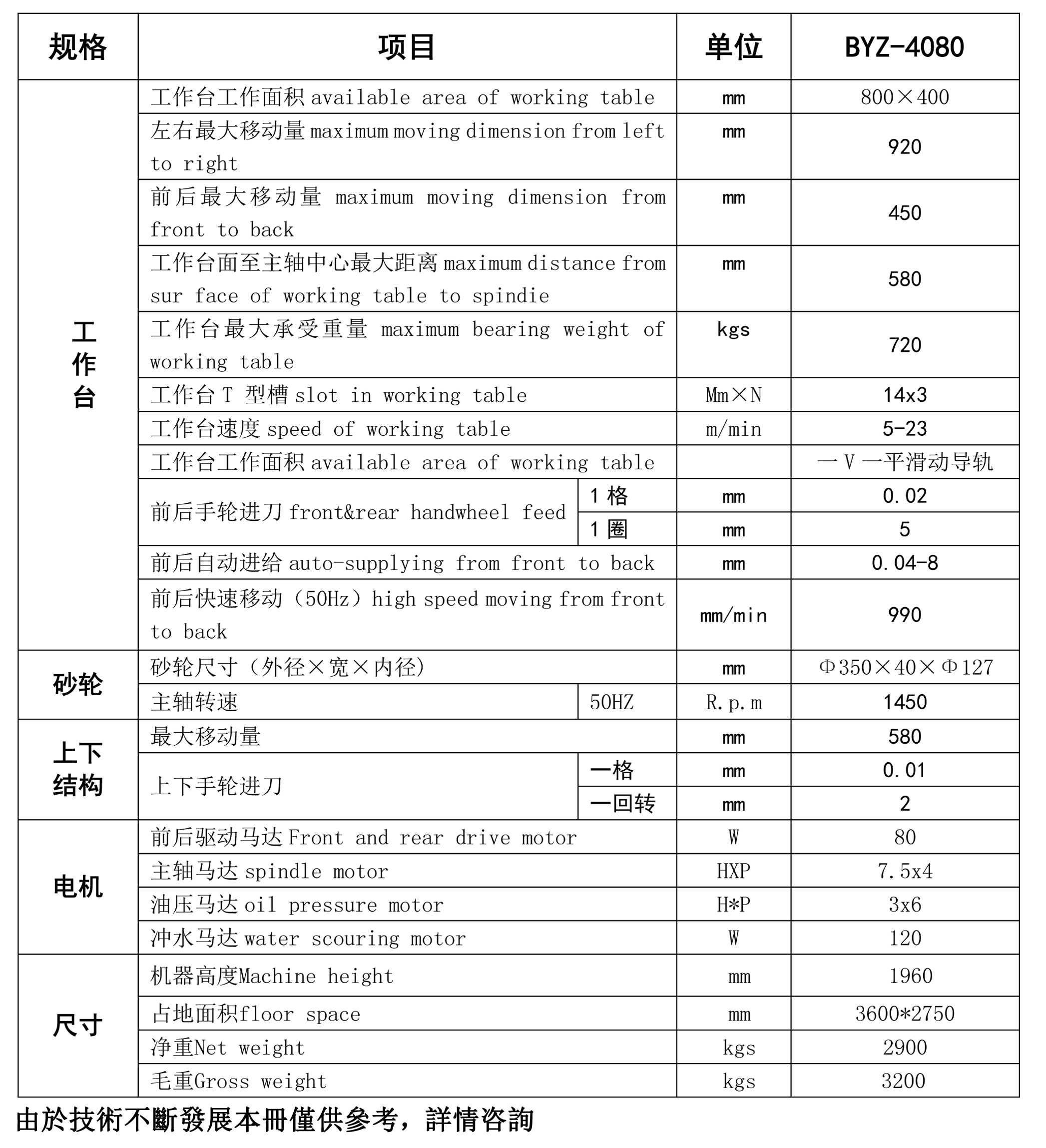 3、本機主軸,軸心跳動0.003mm以內,采用日本P4級軸承。
